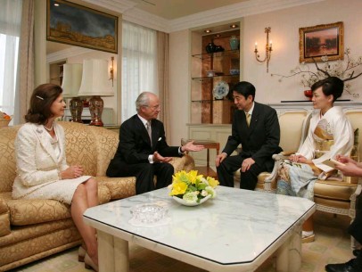 昭恵夫人とともに、都内のホテルで、スウェーデン王国のカール16世グスタフ国王陛下及びシルヴィア王妃陛下を表敬訪問。